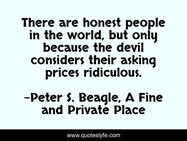 This page presents the quote "There are honest people in the world, but only because the devil considers their asking prices ridiculous.". Author of this quote is Peter S. Beagle, A Fine and Private Place. .