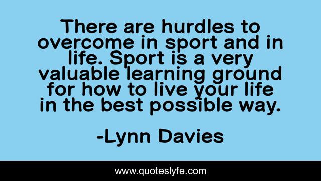 This page presents the quote "There are hurdles to overcome in sport and in life. Sport is a very valuable learning ground for how to live your life in the best possible way.". Author of this quote is Lynn Davies. This quote is about life, live, best,.