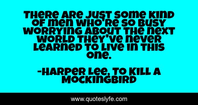 This page presents the quote "There are just some kind of men who're so busy worrying about the next world they've never learned to live in this one.". Author of this quote is Harper Lee, To Kill a Mockingbird. This quote is about human-nature, insights,.