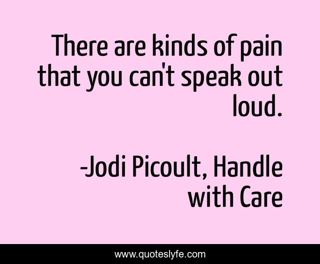 This page presents the quote "There are kinds of pain that you can't speak out loud.". Author of this quote is Jodi Picoult, Handle with Care. .