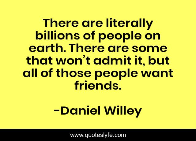 This page presents the quote "There are literally billions of people on earth. There are some that won’t admit it, but all of those people want friends.". Author of this quote is Daniel Willey. This quote is about billion, love, people, friendship, billions, friend, want-friends, friends, affection,.