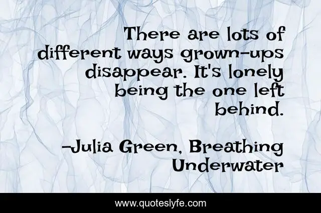 This page presents the quote "There are lots of different ways grown-ups disappear. It's lonely being the one left behind.". Author of this quote is Julia Green, Breathing Underwater. This quote is about life, loneliness,.