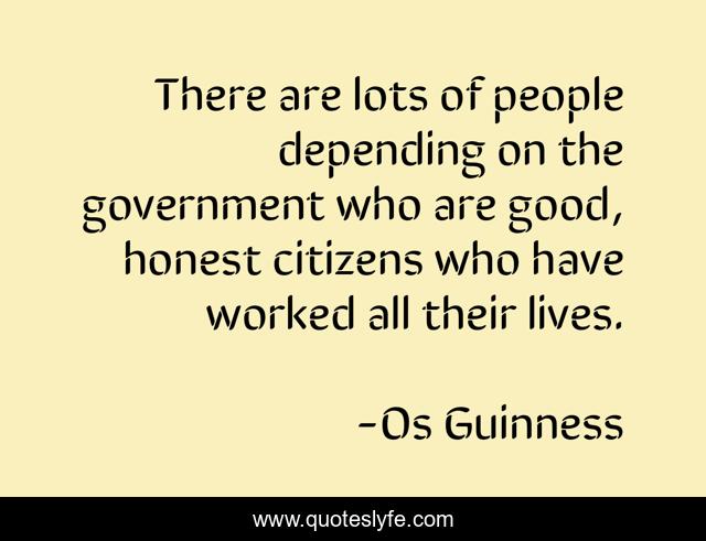 This page presents the quote "There are lots of people depending on the government who are good, honest citizens who have worked all their lives.". Author of this quote is Os Guinness. This quote is about good, people, honest,.