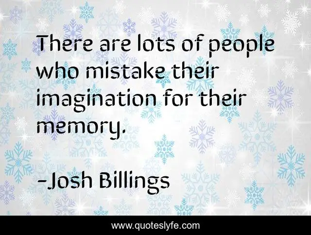 This page presents the quote "There are lots of people who mistake their imagination for their memory.". Author of this quote is Josh Billings. This quote is about imagination, memory, mistake,.