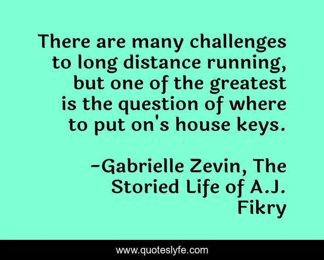 This page presents the quote "There are many challenges to long distance running, but one of the greatest is the question of where to put on's house keys.". Author of this quote is Gabrielle Zevin, The Storied Life of A.J. Fikry. .