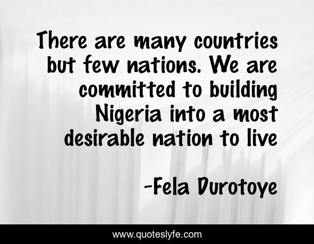 This page presents the quote "There are many countries but few nations. We are committed to building Nigeria into a most desirable nation to live". Author of this quote is Fela Durotoye. This quote is about building, democracy, leadership-development, nations, leadership, nigeria,.
