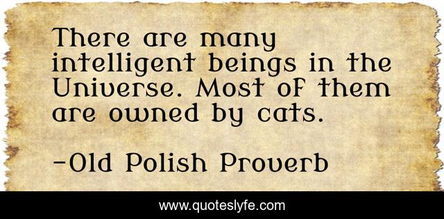 This page presents the quote "There are many intelligent beings in the Universe. Most of them are owned by cats.". Author of this quote is Old Polish Proverb. This quote is about cats, truth-of-life,.