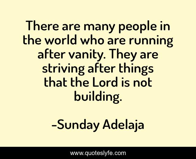 This page presents the quote "There are many people in the world who are running after vanity. They are striving after things that the Lord is not building.". Author of this quote is Sunday Adelaja. .