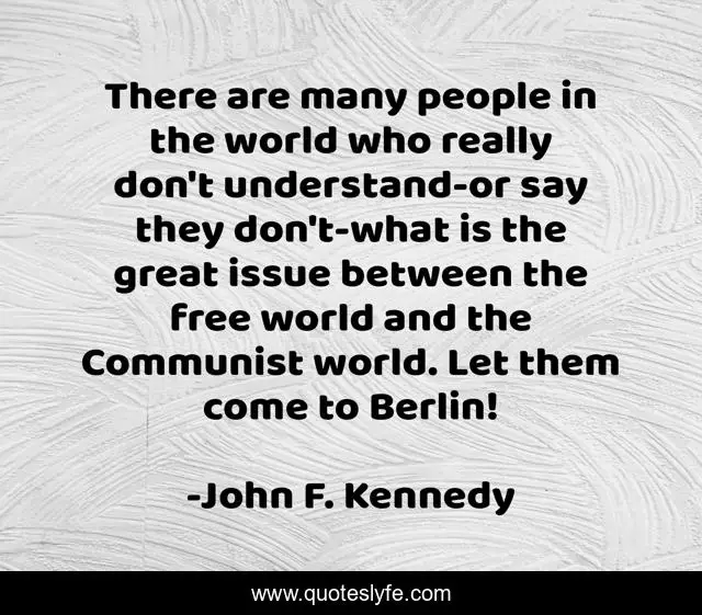 This page presents the quote "There are many people in the world who really don't understand-or say they don't-what is the great issue between the free world and the Communist world. Let them come to Berlin!". Author of this quote is John F. Kennedy. This quote is about world, free, people,.