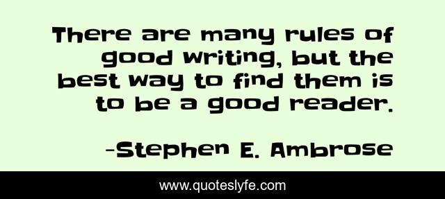 This page presents the quote "There are many rules of good writing, but the best way to find them is to be a good reader.". Author of this quote is Stephen E. Ambrose. .