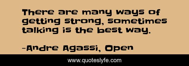 This page presents the quote "There are many ways of getting strong, sometimes talking is the best way.". Author of this quote is Andre Agassi, Open. This quote is about strength, therapy,.