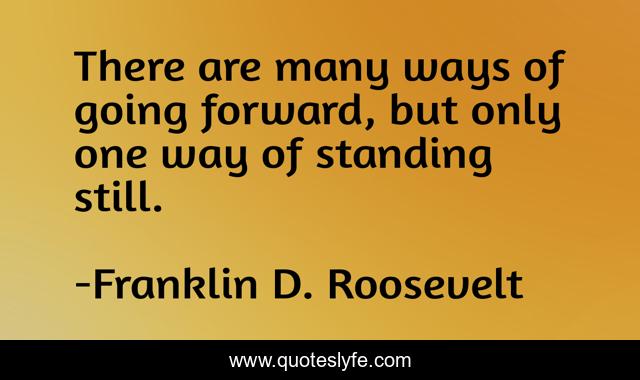 This page presents the quote "There are many ways of going forward, but only one way of standing still.". Author of this quote is Franklin D. Roosevelt. This quote is about action, perseverance, inaction, progress,.