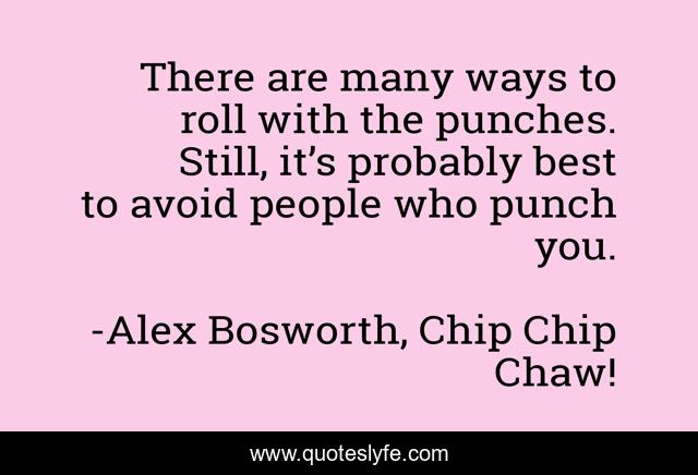 This page presents the quote "There are many ways to roll with the punches. Still, it’s probably best to avoid people who punch you.". Author of this quote is Alex Bosworth, Chip Chip Chaw!. This quote is about advice, punches, violence,.