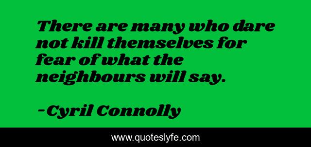 This page presents the quote "There are many who dare not kill themselves for fear of what the neighbours will say.". Author of this quote is Cyril Connolly. .