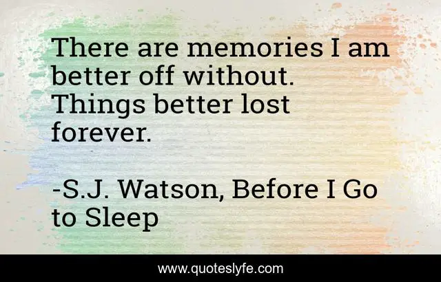 "S.J. Watson, Before I Go to Sleep Quotes." Quoteslyfe.com, 2025. Mon. 08 Dec. 2025. <https://www.quoteslyfe.com/quote/There-are-memories-I-am-better-off-164287>.