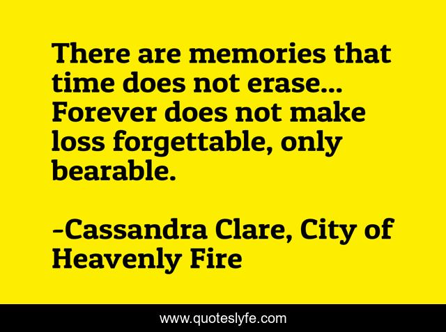 This page presents the quote "There are memories that time does not erase... Forever does not make loss forgettable, only bearable.". Author of this quote is Cassandra Clare, City of Heavenly Fire. This quote is about memories, sacrifice, love, affection, time,.