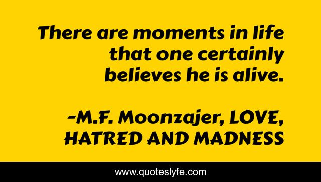 "M.F. Moonzajer, LOVE, HATRED AND MADNESS Quotes." Quoteslyfe.com, 2025. Tue. 09 Dec. 2025. <https://www.quoteslyfe.com/quote/There-are-moments-in-life-that-one-160355>.