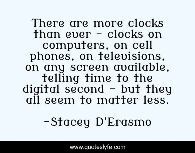 "Stacey D'Erasmo Quotes." Quoteslyfe.com, 2025. Fri. 05 Dec. 2025. <https://www.quoteslyfe.com/quote/There-are-more-clocks-than-ever-clocks-289934>.