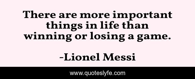 This page presents the quote "There are more important things in life than winning or losing a game.". Author of this quote is Lionel Messi. This quote is about losing, game, winning,.