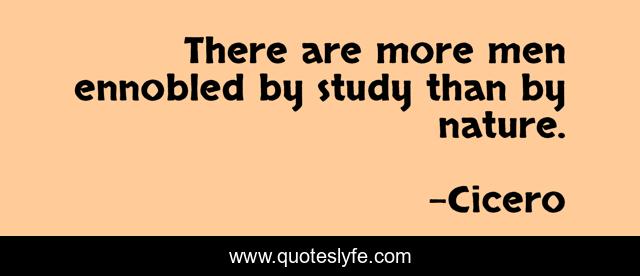This page presents the quote "There are more men ennobled by study than by nature.". Author of this quote is Cicero. .