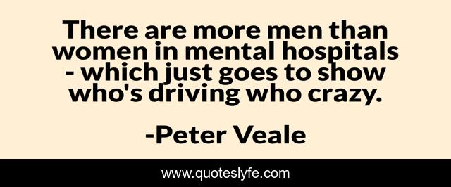 This page presents the quote "There are more men than women in mental hospitals - which just goes to show who's driving who crazy.". Author of this quote is Peter Veale. This quote is about men, women,.