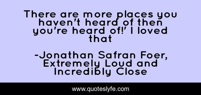 This page presents the quote "There are more places you haven't heard of then you're heard of!' I loved that". Author of this quote is Jonathan Safran Foer, Extremely Loud and Incredibly Close. This quote is about world, travel, places,.