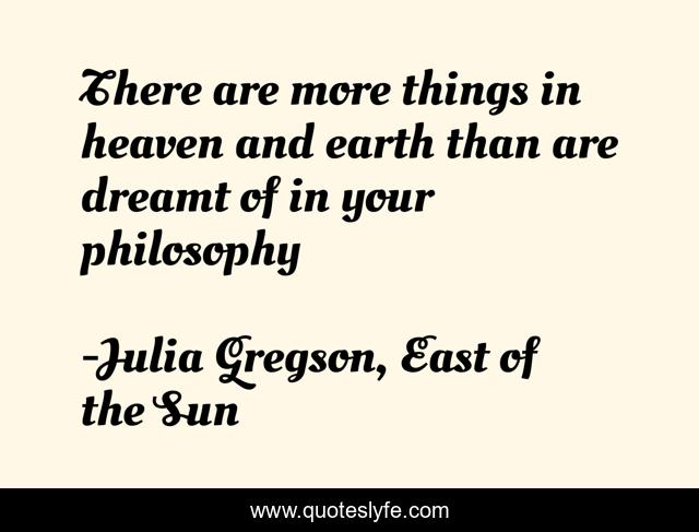 This page presents the quote "There are more things in heaven and earth than are dreamt of in your philosophy". Author of this quote is Julia Gregson, East of the Sun. .