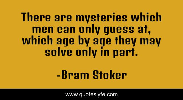 This page presents the quote "There are mysteries which men can only guess at, which age by age they may solve only in part.". Author of this quote is Bram Stoker. This quote is about may, mysteries, men,.
