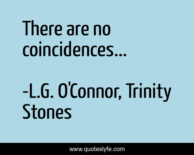 "L.G. O'Connor, Trinity Stones Quotes." Quoteslyfe.com, 2025. Tue. 09 Dec. 2025. <https://www.quoteslyfe.com/quote/There-are-no-coincidences-130593>.