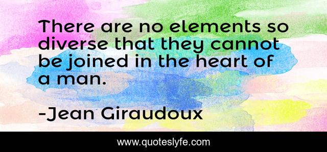 This page presents the quote "There are no elements so diverse that they cannot be joined in the heart of a man.". Author of this quote is Jean Giraudoux. This quote is about heart, elements, man,.