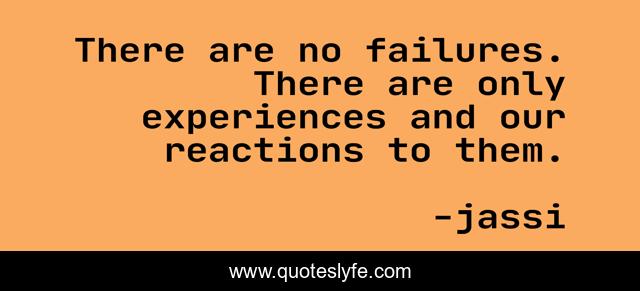 This page presents the quote "There are no failures. There are only experiences and our reactions to them.". Author of this quote is jassi. .