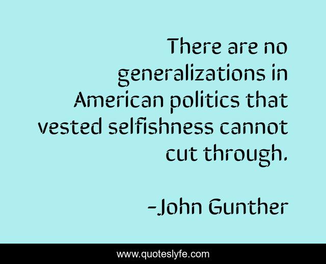 This page presents the quote "There are no generalizations in American politics that vested selfishness cannot cut through.". Author of this quote is John Gunther. This quote is about selfishness, american,.