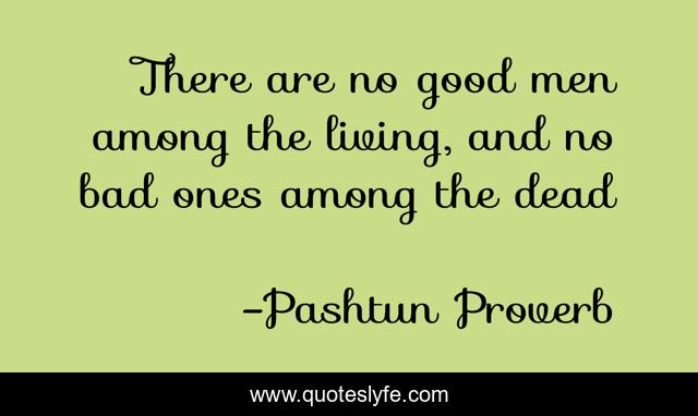 This page presents the quote "There are no good men among the living, and no bad ones among the dead". Author of this quote is Pashtun Proverb. .