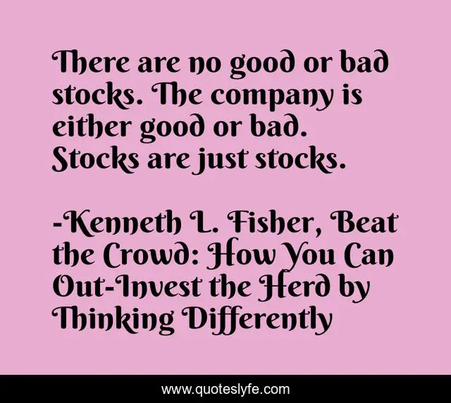 "Kenneth L. Fisher, Beat the Crowd: How You Can Out-Invest the Herd by Thinking Differently Quotes." Quoteslyfe.com, 2025. Sat. 06 Dec. 2025. <https://www.quoteslyfe.com/quote/There-are-no-good-or-bad-stocks-223693>.