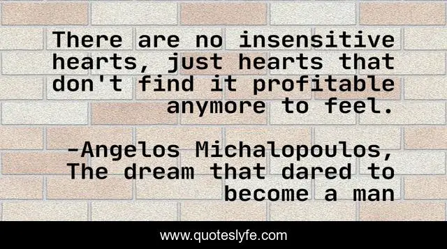 "Angelos Michalopoulos, The dream that dared to become a man Quotes." Quoteslyfe.com, 2025. Tue. 09 Dec. 2025. <https://www.quoteslyfe.com/quote/There-are-no-insensitive-hearts-just-hearts-106147>.