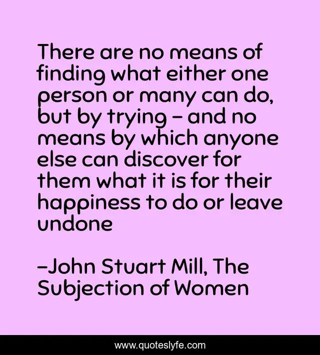 "John Stuart Mill, The Subjection of Women Quotes." Quoteslyfe.com, 2025. Fri. 05 Dec. 2025. <https://www.quoteslyfe.com/quote/There-are-no-means-of-finding-what-9870>.