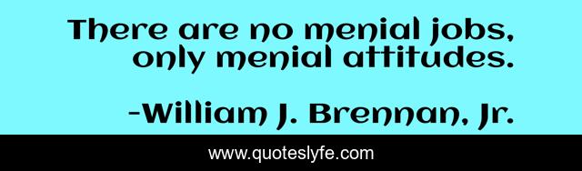 This page presents the quote "There are no menial jobs, only menial attitudes.". Author of this quote is William J. Brennan, Jr.. This quote is about jobs, only, attitudes,.