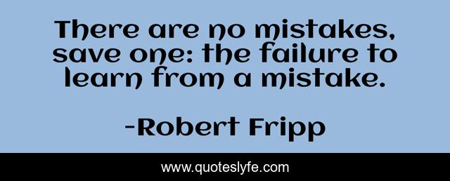 This page presents the quote "There are no mistakes, save one: the failure to learn from a mistake.". Author of this quote is Robert Fripp. This quote is about mistake, mistakes, learn,.
