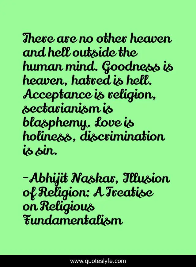 "Abhijit Naskar, Illusion of Religion: A Treatise on Religious Fundamentalism Quotes." Quoteslyfe.com, 2025. Sat. 06 Dec. 2025. <https://www.quoteslyfe.com/quote/There-are-no-other-heaven-and-hell-135003>.