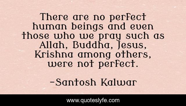 This page presents the quote "There are no perfect human beings and even those who we pray such as Allah, Buddha, Jesus, Krishna among others, were not perfect.". Author of this quote is Santosh Kalwar. This quote is about god, religion,.