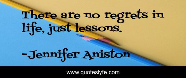 This page presents the quote "There are no regrets in life, just lessons.". Author of this quote is Jennifer Aniston. This quote is about lessons, regrets,.