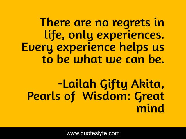 "Lailah Gifty Akita, Pearls of Wisdom: Great mind Quotes." Quoteslyfe.com, 2025. Fri. 05 Dec. 2025. <https://www.quoteslyfe.com/quote/There-are-no-regrets-in-life-only-95196>.