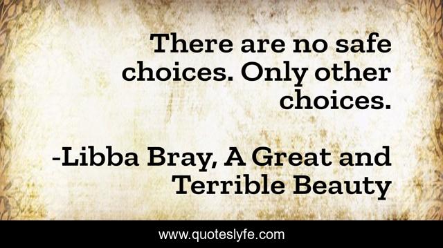 This page presents the quote "There are no safe choices. Only other choices.". Author of this quote is Libba Bray, A Great and Terrible Beauty. .