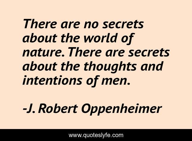 This page presents the quote "There are no secrets about the world of nature. There are secrets about the thoughts and intentions of men.". Author of this quote is J. Robert Oppenheimer. This quote is about secrets, mankind, nature,.