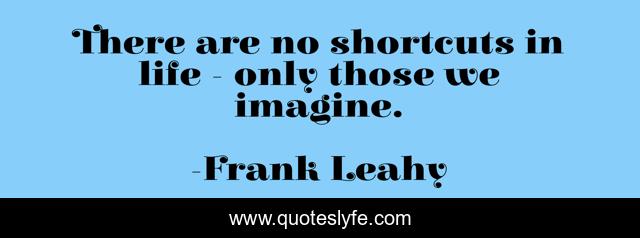 This page presents the quote "There are no shortcuts in life - only those we imagine.". Author of this quote is Frank Leahy. This quote is about shortcuts, life, imagine,.