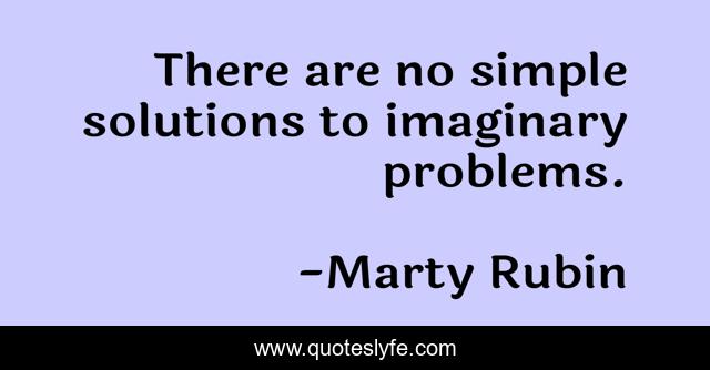 This page presents the quote "There are no simple solutions to imaginary problems.". Author of this quote is Marty Rubin. This quote is about the-imagination, problems,.