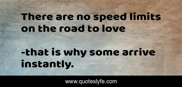 This page presents the quote "There are no speed limits on the road to love". Author of this quote is that is why some arrive instantly.. .