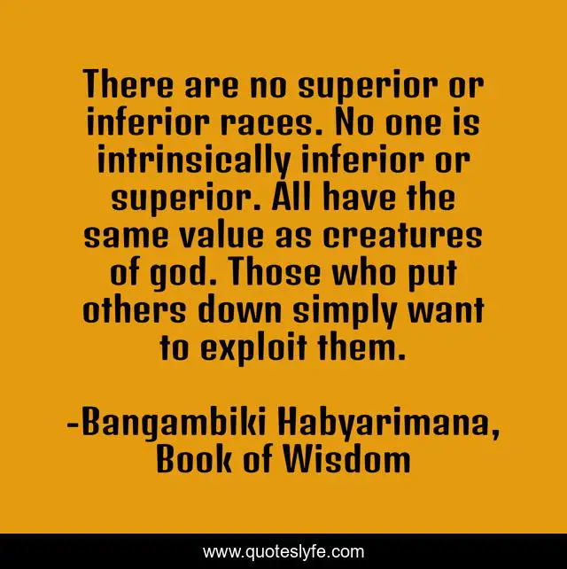 "Bangambiki Habyarimana, Book of Wisdom Quotes." Quoteslyfe.com, 2025. Mon. 08 Dec. 2025. <https://www.quoteslyfe.com/quote/There-are-no-superior-or-inferior-races-200323>.