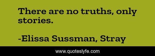 This page presents the quote "There are no truths, only stories.". Author of this quote is Elissa Sussman, Stray. .