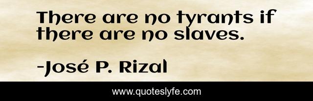 This page presents the quote "There are no tyrants if there are no slaves.". Author of this quote is José P. Rizal. This quote is about freedom, slavery, inspiration,.